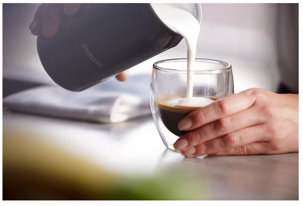 Milk Twister Milk frother Stunningly velvety foam The Philips milk frother gives you the freedom to enjoy a wide range of hot and cold coffee drinks at home. Thanks to the innovative frother, you can prepare delicious coffee and milk drinks with stunningly velvety milk foam.