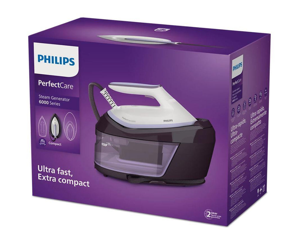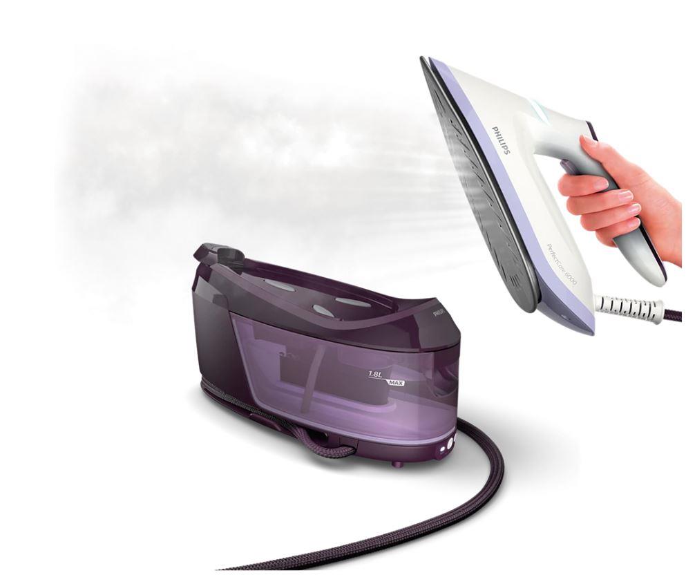 PerfectCare 6000 series Ironing system Extremely fast and compact. The PerfectCare 6000 series delivers the best steam performance - now in a completely redesigned, compact design. Faster ironing, compact storage. OptimalTEMP technology ensures nothing gets burned Strong steam Guaranteed ironing without burning Removable 1.8 L water tank Compact