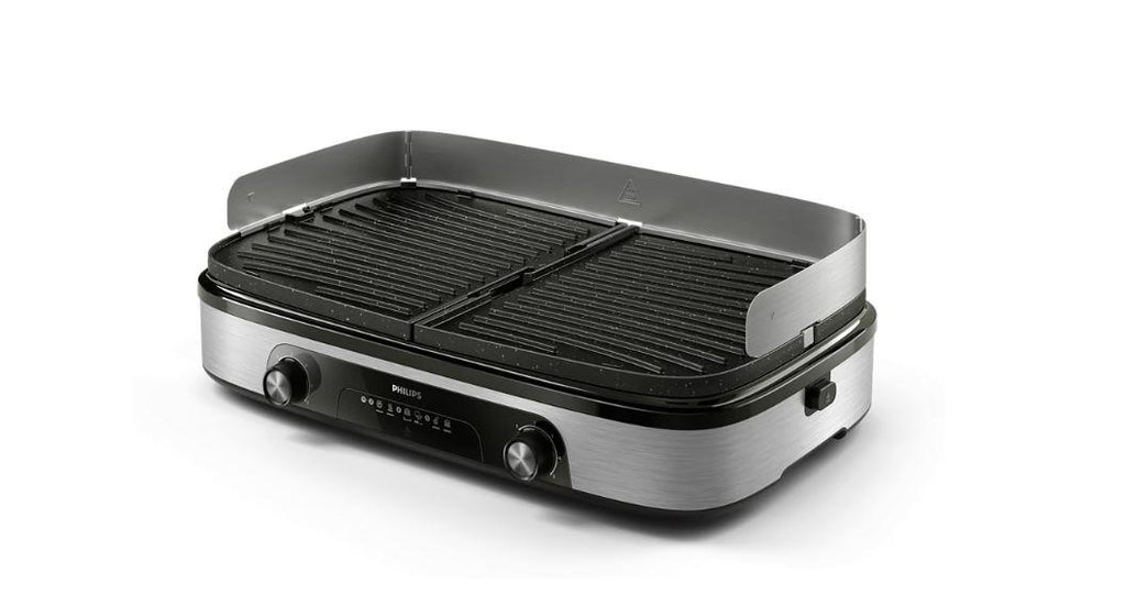 Table grill Delicious grilled dishes - from breakfast to dinner Enjoy the taste of grilled food at home with the Philips table grill. Two heating zones and rotating plates for versatile cooking options and excellent results. 2 heating zones Reversible boards Adjustable temperature Large grilling surface: 1400 cm² 2400W