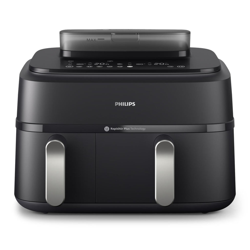 Philips 5000 series NA551/00. Product type: Hot air fryer, Capacity: 9 L, Fryer food capacity: 1.4 kg. Construction type: Double, Product colour: Silver, Control type: Touch. Display type: LED. Power: 2750 W, AC input voltage: 220-240 V, AC input frequency: 50 Hz. Width: 383 mm, Depth: 444 mm, Height: 355 mm