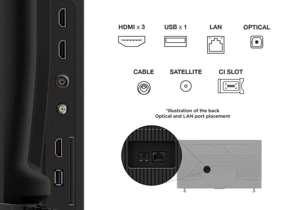 Featuring high quality speakers, you can enjoy immersive Dolby Atmos sound quality or pass it to a TCL sound bar.