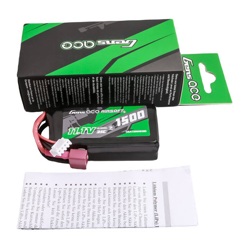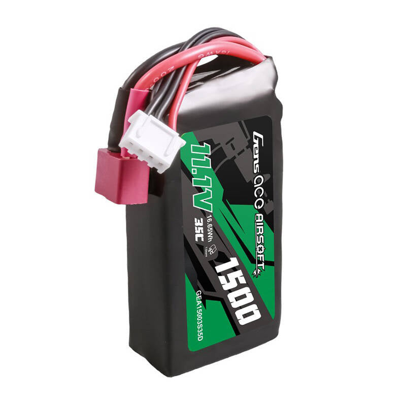 Gens ace 35C 1500mAh 3S1P 11.1V Airsoft Gun Lipo Battery with T Plug Connector.