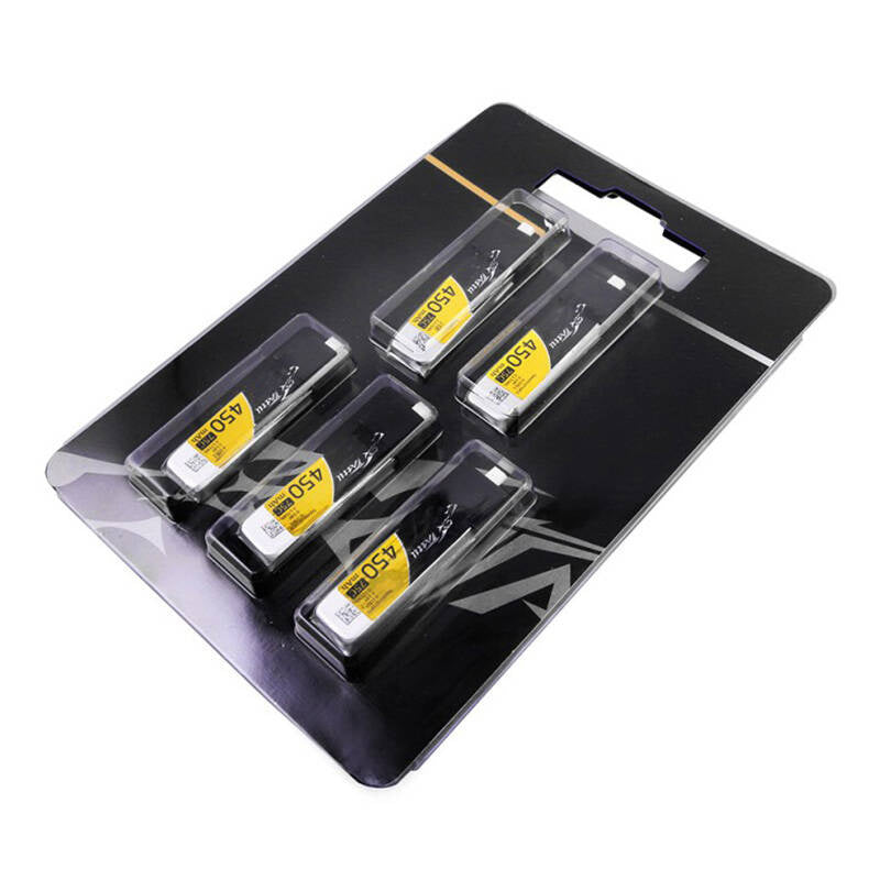 The set includes 5 powerful Lipo Gens Ace batteries designed specifically for small drones, such as the BetaFPV 1S Tinywhoop and Cetus Pro FPV, for example. Each offers a capacity of 450 mAh and comes with a BT 2.0 connector for excellent compatibility and ease of use. The 75C discharge ratio guarantees the delivery of high power and high energy pulses, making the product ideal even for dynamic flights. The dimensions of each battery are 61 x 15 x 7.5 mm, and the weight is only about 12 g, which makes them ideal for use in lightweight drone designs - they will not be an excessive burden.