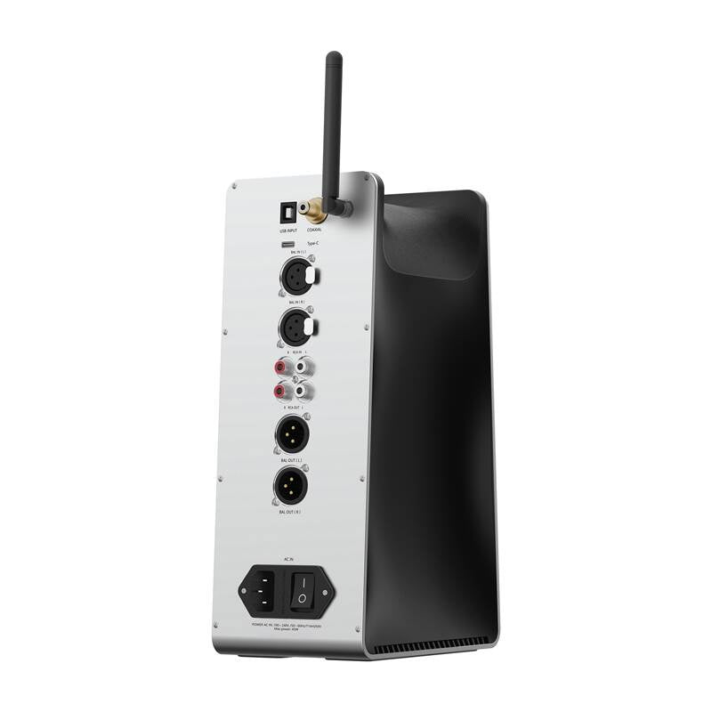 The amplifier offers a wide range of connection options: balanced XLR and RCA inputs and outputs, as well as USB-B and USB-C digital connectors. In addition, the device supports Bluetooth technology with aptX-HD and LDAC codecs, enabling lossless wireless audio streaming. This makes the EF600 ideal for both traditional desktop systems and mobile setups.