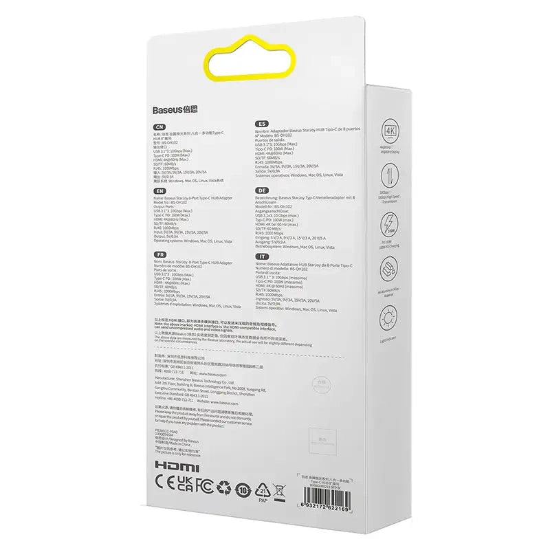 Hub 8in1 Baseus StarJoy Series, USB-C to HDMI + 3 x USB 3.1 + USB-C PD + RJ45 + microSD/SD
