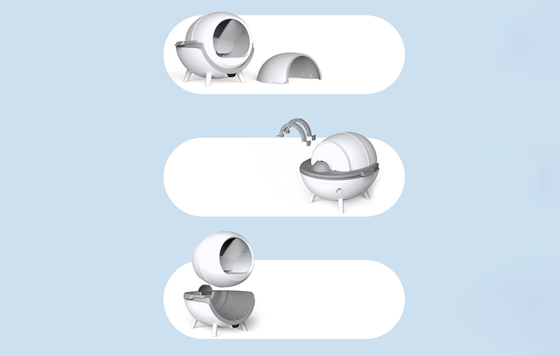 Do not worry about your pet's safety. The litter box has 4 weight sensors so that it can effectively detect the presence of pets. Its operation will automatically stop when the cat comes inside and resume once it has gone. Moreover, in case of any abnormalities, you will immediately receive a notification in the app. The device also has a special system that eliminates odor, bacteria and viruses. In addition, the low voltage of 12V protects your pets from electric shock.