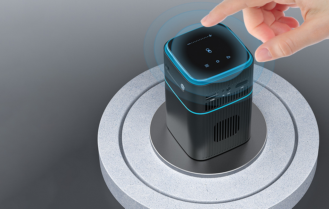 The projector's immense capabilities go hand in hand with its childlike operation. On the top panel of the device, you'll find a convenient-to-use touch panel that provides greater smoothness and comfort than standard buttons. It also comes with a handy remote control that makes using the device even easier. You no longer have to move from your chair or couch every time!