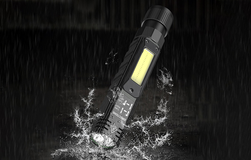 The functional Superfire G19 flashlight is distinguished by its high brightness thanks to 200 lumens, 200-meter light range and 800-capacity battery. With 5 light modes and the ability to use it in different ways, you can easily adjust it to your needs. Its light weight of 104 g and compact size make using its functionality easy and enjoyable. An additional COB lamp placed on the side offers even more possibilities.