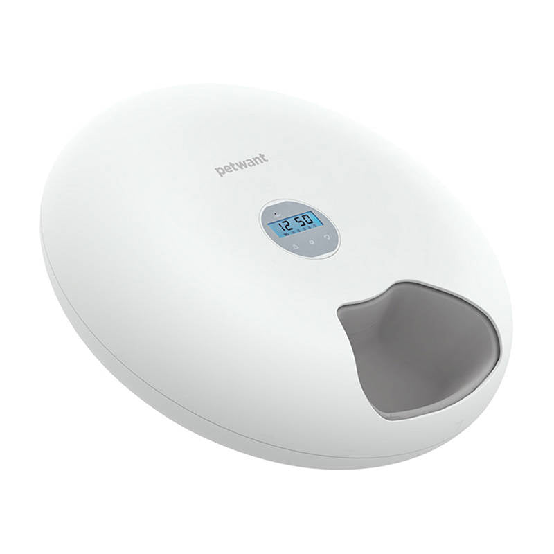 The dispenser is equipped with six separate chambers - the capacity of each chamber is 180 ml. This allows you to plan in advance as many as 6 meals for the day! The device automatically rotates at the set time, revealing the next portion of food for your pet. With Petwant, you are assured that your pet will always get its food on time - even when you are not at home!