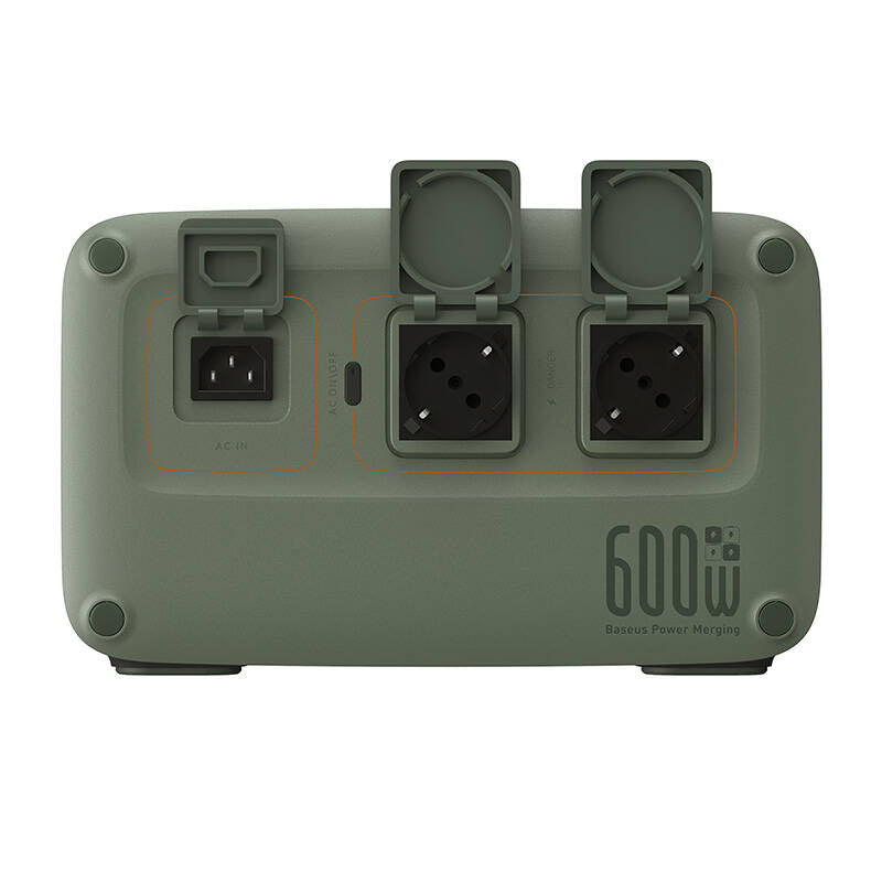 AC: 200-240V, 2.8A, 50 Hz, 600W (pure sine wave, peak power: 1200W); USB1/USB2: 5V/4.5A, 4.5V/5A, 5V/3A, 9V/3A, 12V/2.5A 30W Max; USB-C1/USB-C2: 5V/3A, 9V/3A, 12V/3A, 15V/3A, 20V/5A 100W Max; DC + car charger output: 12V/10A 120W; USB-C + USB-C2: 130W Max; USB1 + USB2: 60W Max; USB1 + USB-C: 5V/3A; USB2 + USB-C2: 5V/3A; USB1 + USB2 + USB-C1 + USB-C2: 5V/6A |