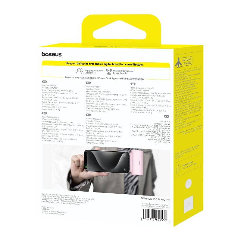 Baseus Compact USB-C Powerbank 5000mAh, 20W (pink)