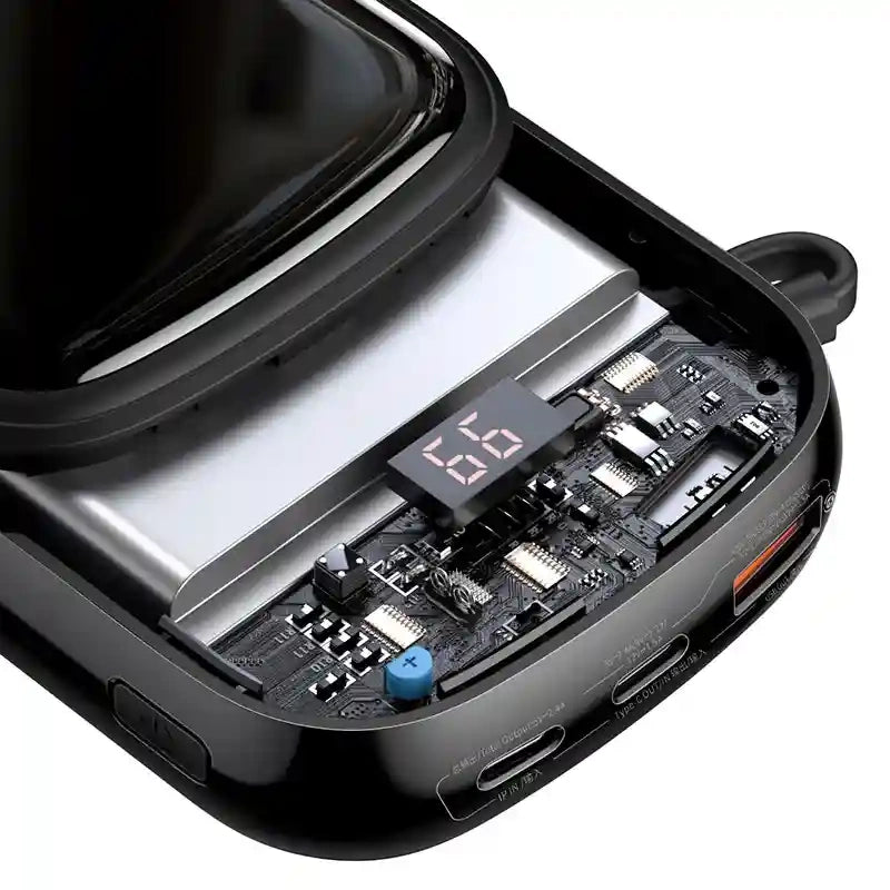 The Baseus Qpow Pro powerbank with built-in Lightning cable has USB-C and USB ports, so it can charge up to 3 devices at once. It also supports SCP, FCP, QC and PD fast charging protocols, and will charge an Apple 13 to 50% in just 30 minutes.