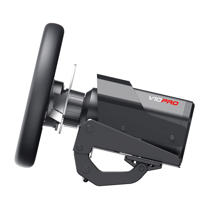 The detachable 270mm D-shaped steering wheel is upholstered in high-quality leather for comfort and a stable grip. It features 17 programmable buttons and F1 formula-style paddles, giving you full control over every maneuver. The use of an aerospace-grade slip ring has resulted in durable and reliable signal transmission even during intense use.