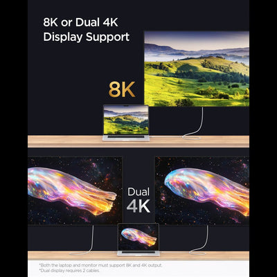 Thanks to its support for Thunderbolt 3/4 standards, the cable can also handle demanding tasks - it supports 8K (single) / 4K (dual) video transmission using DisplayPort 2.0, making it a great choice for connecting monitors, laptops or docking stations.