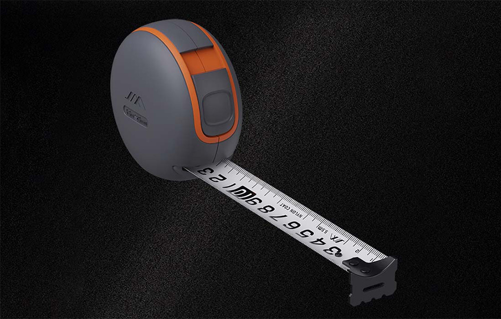 Like most retractable tape measures, the JIMI Home tape measure is equipped with 2 brakes on its retraction. At the bottom is a button that allows you to adjust the speed of the tape retraction or when you want to take a quick measurement. At the top is a switch which, when lowered down, locks the tape from retracting so that you can take a longer measurement or take off the measurements to save.