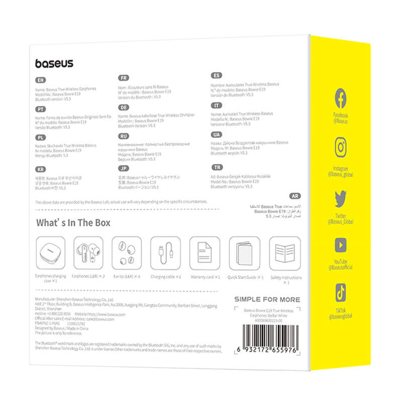 Forget about uncomfortable headphones! Baseus Bowie E19 are synonymous with comfort. Made of lightweight but durable ABS and PC material, they weigh just 46.2 grams, making them almost imperceptible. The ergonomic design adapts perfectly to the shape of the ear, ensuring comfort even during prolonged wear. In addition, thanks to their IPX5 waterproof rating, they are not intimidated by rain or sweat - an ideal choice for active people who value freedom of movement.
