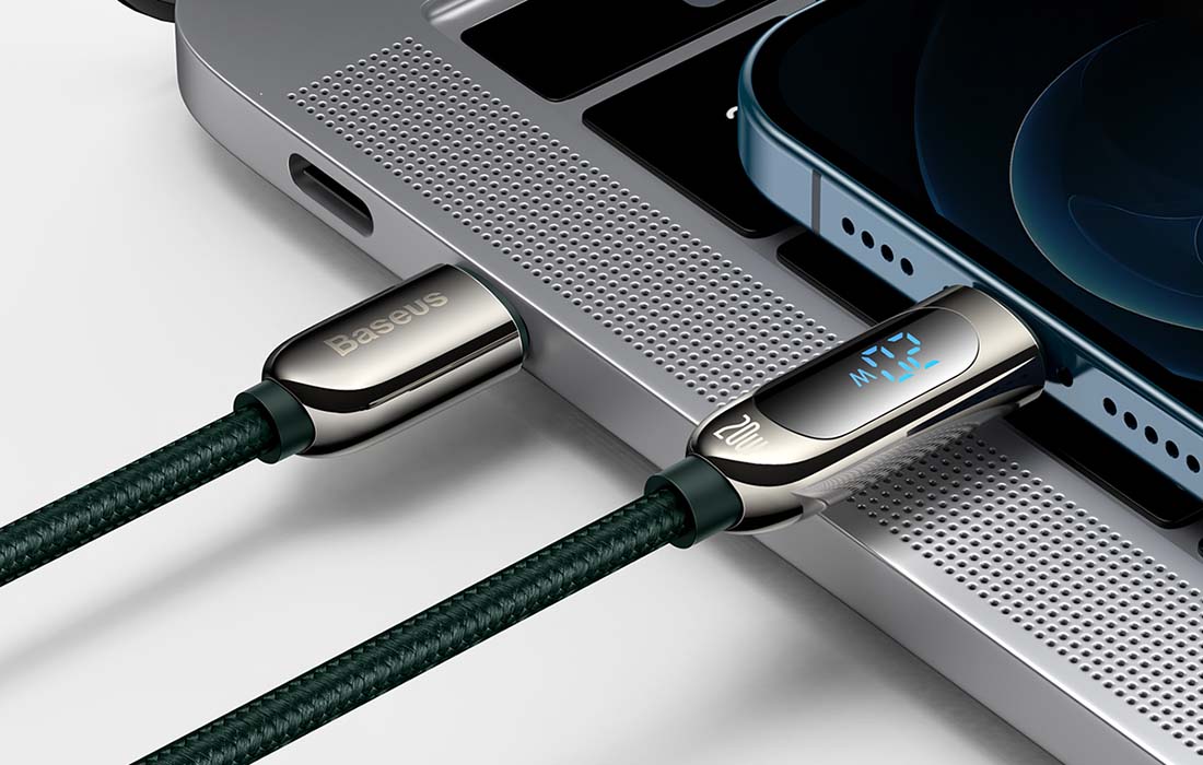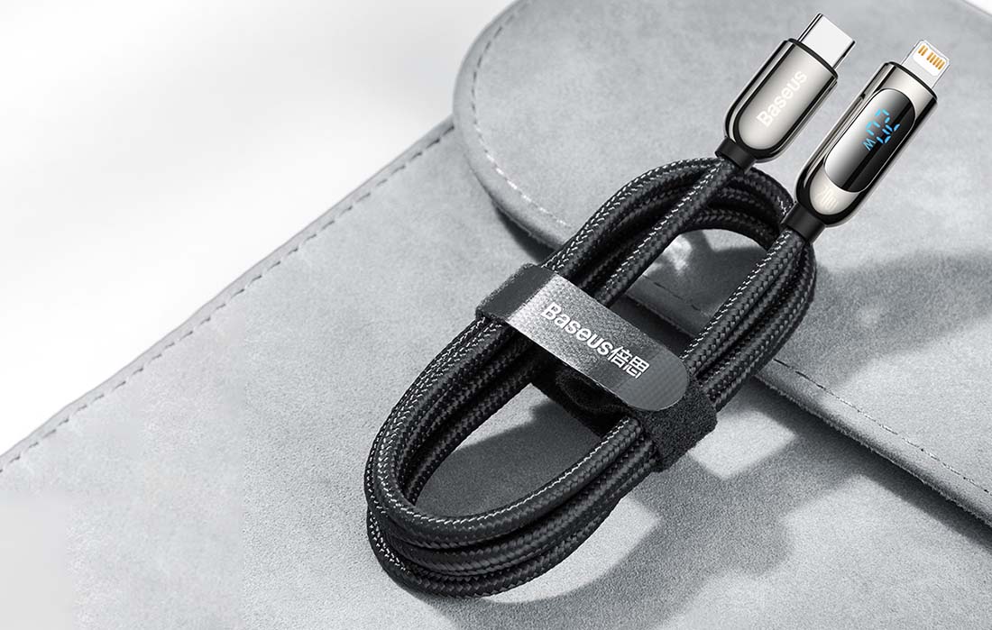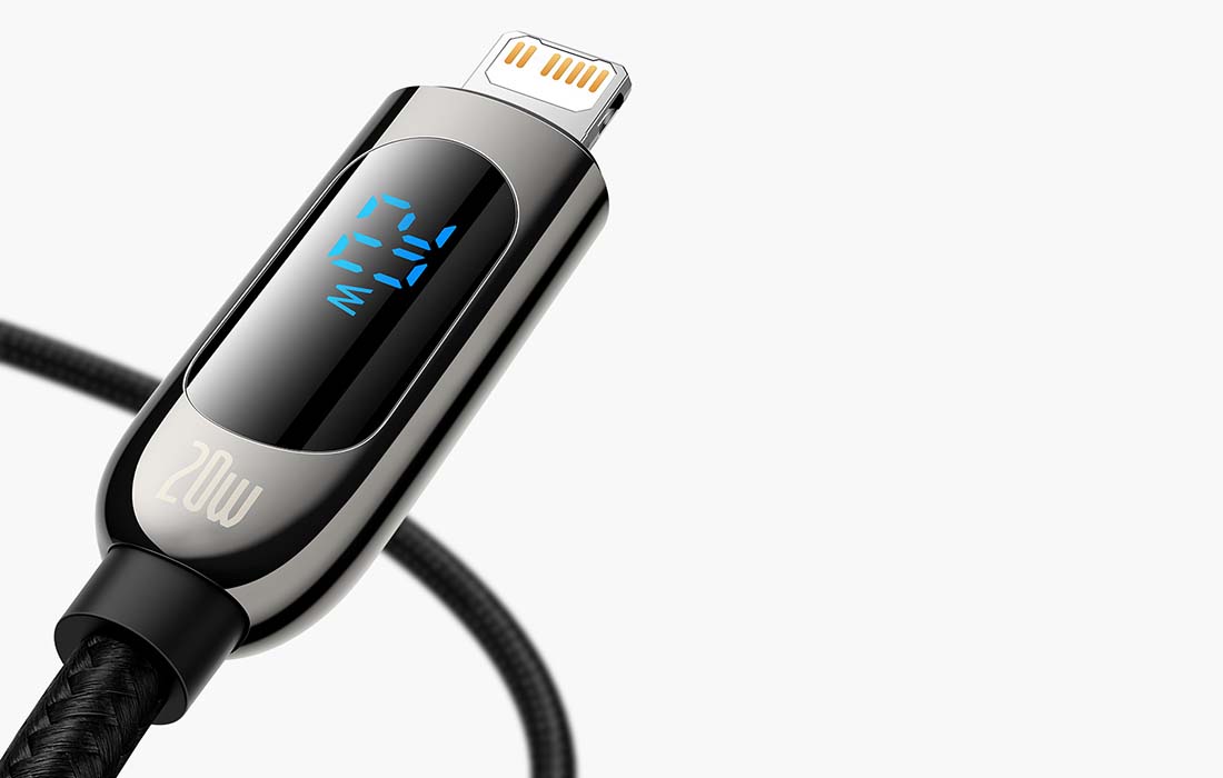 Now you can instantly charge your iPhone and transfer files at speeds up to 480Mbps. The USB-C to lightning cable by Baseus supports PD 20W fast charging, and thanks to the built-in display, you can check its power in real time. The product is also extremely durable, and its advanced chip ensures safe use and protects your devices from damage.
