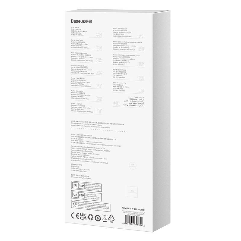 With Baseus, you can also enjoy fast file transfers. The Tungsten Gold cable offers transmission speeds of up to 480 Mbps. This allows you to copy selected photos, documents or videos in no time. No more endless waiting - transfer files in no time and save time!