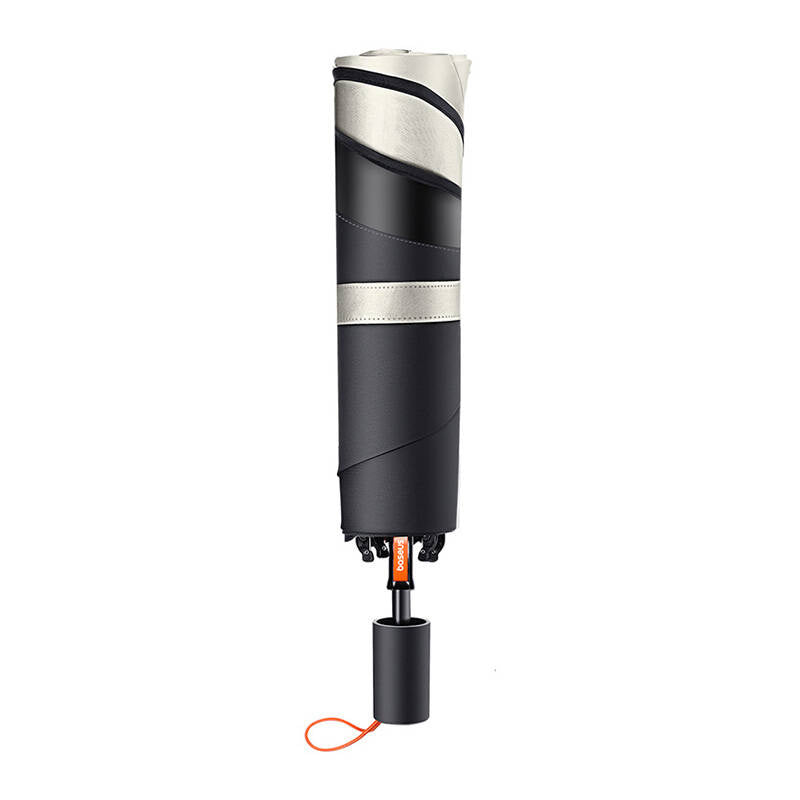 The Baseus CoolRide model is very convenient to use. The integrated mechanism allows you to install and remove it easily, providing effective protection from the sun whenever you need it. You also have a short lanyard at your disposal, which makes it easy to carry the umbrella. What's more, the accessory's handle bends 360°, so you can position it any way you want.